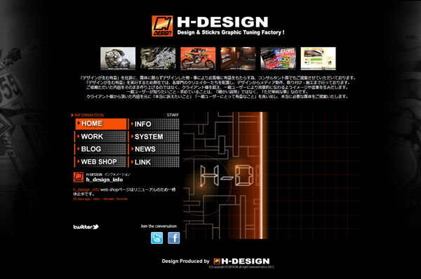 H-DESIGNクリエイティブワークスは、冷静かつ俊敏なレスポンスで人と人との信用・信頼を一番に、ご対応させていただいております。 小さな名刺一枚から、大規模なイベントメディア・インターネットプロモーションまで、コミュニケーション・デザインにかける熱い思いは、隅々にまで妥協することは決してございません。 小さなデザインオフィスですが社員一同、中身はギッシリびっしり詰まっております。どうぞ、お気軽にご相談・お問合せください。 きっと、「何かが変わる、変われるきっかけ」をご提案させていただけることと信じて疑いません。 今後とも、どうぞよろしくお願い申し上げます。 |